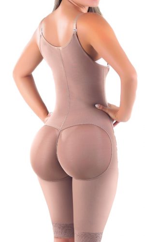 Faja Moldeadora, a la rodilla Levantacola, con tres filas de broches, espalda alta con tiras ajustables. Compresión media-alta
