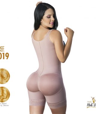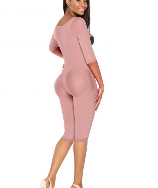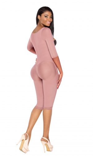 Faja Moldeadora, con mangas, senos libres, a la rodilla Levantacola, tres filas de broches. Compresión media-alta